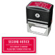 Second notice self-inking stamp with red ink for any business, company, corporation, or home office. Bold design reading "this account is overdue, please remit payment within 48h (editable time)", ideal for stamping documents with your own color choice.
