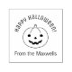 Smiling Halloween pumpkin. Customize with your own message and family name.