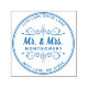 Este sello de autotinta de dirección de retorno con una tipografía de escritura moderna muestra su nombre casero con Mr. Y la Sra. Above y abajo es una flor decorativa dibujada a mano con corazones y hojas. El borde exterior tiene un doble borde de anillo y dentro de él está su dirección de calle y el pueblo/estado/zip para que usted lo personalize. Disfruté de crear esto para ti. ¡Espero que disfrutes! Diseñado por la artista ©Susan Coffey.