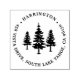 El sello de goma de la dirección de retorno de moda rústica de bosques muestra su nombre y dirección de retorno rodeando un trío de siluetas de pino.