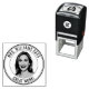 This self inking custom circular stamp features a classic black and white style, designed to celebrate student achievement in the classroom. The stamp's central element is a space for a personalized photo such as the teachers headshot, circled by customizable text of encouragement or a motivational phrase. This design maintains a professional, easy to read aesthetic, ensuring a clear and crisp impression on every paper.