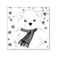 Un adorable dibujo de un oso de peluche blanco con una bufanda roja rodeada de corazones rojos brillantes.