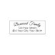Diseño simple basado en texto con un nombre familiar que sobresale un poco con un tipo de letra delicado y una presentación ligeramente curvada. A continuación se muestran dos líneas de texto para la dirección, con un tipo de letra simple para una lectura sencilla. El texto, las fuentes, el tamaño y las posiciones pueden personalizarse fácilmente. Se puede transferir a un sello de madera para usar con tinta independiente.