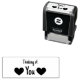 Thinking of is above You on this thinking of you stamp. A heart is on each side of the word you. You can edit the text if desired.