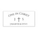 Design features the monogram of bride and groom; the image of a cross displayed in center. Customizable phrase is displayed at top as an arch. Names of bride and groom are featured below. Designed to coordinate with the Timeless Catholic Monogrammed Wedding Suite.