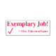 Este motivador diseño de sellos de goma incluye el mensaje "¡Trabajo ejemplar!" y el nombre de un profesor personalizado o educador. También cuenta con una marca de verificación decorativa. Podría ser utilizado por un profesor de escuela, educador, instructor o tutor cuando califica el trabajo de un estudiante, para indicar que un estudiante ha hecho un trabajo excepcional.