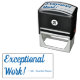 Este motivador diseño de sellos de goma incluye el inspirador mensaje "¡Trabajo excepcional!" y el nombre personalizado del profesor, educador o tutor. Podría ser utilizado por un profesor, educador o tutor al marcar las asignaciones, para reconocer que un estudiante ha tenido un buen desempeño.