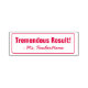 Este diseño positivo de sellos de goma incluye el motivador mensaje de retroalimentación "¡Tremendo resultado!" y el nombre de un tutor personalizado. Podría ser utilizado por un profesor, educador o tutor cuando califica el trabajo de un estudiante, para indicar que un estudiante ha hecho un trabajo excepcional.