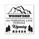 Sello de goma de dirección de retorno retro rústico con fuentes retro, montañas escarpadas y abetos.