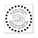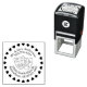 Este sello redondo presenta un círculo decorativo de corazones que enmarcan todo el diseño. El nombre se muestra en una curva suave en la parte superior, seguida por el número de teléfono directamente debajo. En el centro, un gráfico de las dobles máscaras del teatro agrega un toque creativo y dramático. La dirección está elegantemente curvada alrededor de la parte inferior en dos líneas separadas, completando el diseño circular.