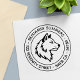 Simple yet elegant black and white illustration of a wolf head in profile. Customizable text. Please note, you may need to adjust the information you enter by adding or deleting some characters to make the text properly aligned.