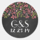 pegatinas florales para bodas en pizarra con las iniciales y la fecha boda del novio y de la novia.