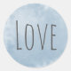 Fondo azul y gris suave, salpicado un poco con purpurina blanco, crea un paladar suave y minimalista para el mundo AMOR. Está escrito en un estilo moderno y con poca profundidad. Perfecto para sellar una invitación a bodas Boho, una ducha de novia o incluso una invitación al 50 aniversario del boda para un par de hippies Baby Boomer.