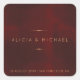 Pegatina de boda con tipografía moderna simple de oro y cobre glamurosa con dos divisores de texto finos de oro y cobre sobre un fondo anticuado y desgastado de vino tinto burdeos oscuro. ++++++++++++++++ ¡Fácil de personalizar con su texto! +++++++++++++++ Ideal para recepciones de boda formales y elegantes de etiqueta negra para todas las estaciones. Recomendado principalmente para bodas temáticas de Navidad de invierno.