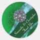bonito de moda brillante patrón de damasco verde y negro irlandés con una gema de cristal de diamante diamante de imitación, elegante estilo tradicional de personalizable de estilo vintage boda gracias sello, fácil personalizar los nombres de novias y novios o monogramas a las plantillas para crear un personalizado único gracias al favor o sello pegatina por sus ocasiones y celebraciones especiales de matrimonio. Visite la TIENDA PERSONALIZED_ BODAS para obtener conjuntos de suites boda coordinados.