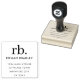A minimalist monogram 2.5-inch square return address wooden stamp featuring bold large typography initials in a classic font with your name and address displayed neatly below on a clear transparent translucent background. This contemporary design blends timeless sophistication with modern edge, perfect for both personal and business use. Easily customize with your initials, name, and address to create a polished, professional, and one-of-a-kind look. Ideal for weddings, branding, correspondence, or everyday mail, this bold monogram label adds style and confidence to every envelope. A trendy, elegant, and versatile black stamp that elevates your stationery with minimalist luxury.