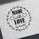 Made With Love Rubber Stamp - Presentando un timbre de goma increíblemente lindo con una corona de hojas alrededor del mensaje "Made with Love" decorado con dos corazoncitos. El sello que quieres marcar tus objetos artesanales para el negocio o como regalos para tus amigos. Agregue su nombre al producto para hacerlo más personal y único. Revisa nuestra colección de sellos de manualidades y cocción para opciones más increíbles.