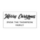 Feliz sello de goma navideño con Feliz Navidad escrito en un audaz guión de caligrafía. Agregue su nombre de familia o dirección de devolución.