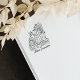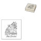 Este sello de goma de "De la biblioteca de" presenta un gato vintage en una estantería con nombre personalizado.