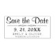 Boda de parejas elegantes salva el sello de goma de la fecha. Haga que su propia boda guarde el sello de fecha con el texto Guardar la fecha en el guión de moda, los nombres de novia y novio, la fecha del boda y la ubicación del boda.
