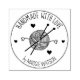 Este sello de goma "hecho a mano con amor" incluye una bola de lana con un nombre personalizado.