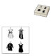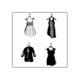 El sello de goma contiene una fila de ilustraciones originales de vestidos de bonito en las perchas.