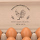 Mejore la presentación y la marca de su granja con nuestro hermoso cártel de huevos de cosecha rústica con su información de negocios. Esta estampilla de excelente factura combina la tipografía vintage con un ilustracion de gallos en el centro, creando una combinación perfecta de elegancia y encanto rústico. Ideal para etiquetar las cajas de huevo, este sello le garantiza la identidad única de su granja. Presione el botón proporcionado para personalizar su sello con su granja familiar o la información del nombre y producto de su casa. ¡Estarás encantado!
