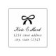 Winter wedding return address stamp featuring elegant Christmas bow design with couple's name and address.