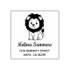 Cute cartoon illustration of a lion with fluffy mane sitting. Customizable text.