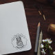 5 x 5 cm. Sello de caucho de madera, Color del cartucho de tinta = Ninguno, Orientación = Horizontal, Mango = Mango de madera