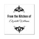 El Cliente puede personalizar el texto para mostrar. Dice: "Desde la cocina de" y tiene una segunda línea para su nombre o negocio.