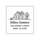 Una simple línea de arte de una casa de dos pisos con un auto estacionado en el lado izquierdo y un árbol a la derecha. Personalizar con su propia dirección.