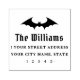 Sello de goma de dirección de retorno de Halloween con una silueta de murciélago volador. A continuación se muestra el nombre o el nombre de la familia en una fuente de estilo gótico y la dirección de retorno.