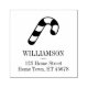 Un diseño personalizado de sellos de goma con un bastón de caramelo sobre tu nombre y el texto de la dirección de retorno debajo. Ideal para añadir un toque de mano extra a tus tarjetas de vacaciones.
