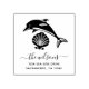 Sello de caucho con dirección náutica moderna y elegante. El diseño incluye un icono de delfines y conchas marinas, un nombre de familia con letras escritas a mano y una dirección.