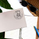 Este sello de goma de "Dirección de devolución" incluye un gato angora turco con nombre y dirección personalizados familiares.