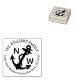 Este sello de goma con dirección de retorno inspirado en la náutica incluye un ancla en el centro con cuerda y sus iniciales monogramadas a ambos lados. En la tipografía circular está tu nombre y dirección para que puedas personalizar. Diseñado por la artista de renombre mundial ©Tim Coffey.