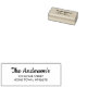 Un diseño tradicional personalizado de sellos con tinta automática que incluye el nombre de la secuencia de comandos por encima del texto de la dirección de retorno.
