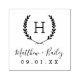 Crea un sello de boda monogramado para personalizar favores, bolsos de bienvenida o papelería. Personalice la plantilla con los nombres de la novia y del novio o iniciales de monograma. Añada su fecha de boda, la ciudad, el estado o el nombre del lugar de celebración o cualquier otro texto personalizado. Este moderno diseño rústico estilo logo tiene un marco de rama de laurel con su monograma inicial. Utilice las herramientas de diseño para agregar más texto o editar las fuentes y el diseño.