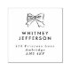 Un nombre sencillo y personalizado y un sello de dirección con un arco dibujado a mano con tu nombre y dirección debajo. Es un gran regalo para los amantes de la papelería y los adictos.