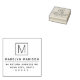 Elegante sello de goma de dirección de retorno con tu monograma inicial con el nombre y dirección abajo. Moderna, minimalista
