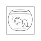 Ilustracion vectorial de un pez dorado nadando en una pecera vacía de decoraciones.