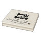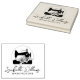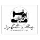 Este sello personalizado incluye una máquina de coser con flores, un nombre y un lema.