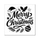 Trae alegría festiva a tus artesanías con este sello de goma navideña. Esta estampilla presenta un elegante diseño negro con letras en negrita de "Feliz Navidad", acentuadas por un sombrero de Santa, hojas huecas, ornamentos y estrellas brillantes. Perfecto para tarjetas de vacaciones, etiquetas de regalo, scrapreserve y papel de embalaje personalizado. Añade un toque clásico de espíritu festivo a tus creaciones.