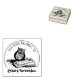 Esta estampilla de goma "Este libro pertenece a" muestra un lindo búho con libros y un nombre.