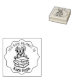 Este sello de goma "Este libro pertenece a" incluye un lindo Labrador con libros y un nombre.