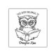 Este sello de goma para libros presenta un búho lindo con un nombre personalizado.