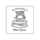 Este sello de goma para libros presenta un búho lindo con un nombre personalizado.