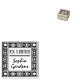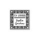 Un antiguo sello de caucho de Libris con un marco exterior decorativo de diseño compuesto por triángulos y cuadrados con un punto circular en cada esquina.
