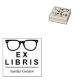 Un elegante antiguo sello de calidad con un motivo de gafas de estilo Hipster/Retro. Con Ex Libris escrito en un elegante y audaz tipo de letra san serif que recuerda a los gráficos de prueba ocular y subrayado con una línea negra para equilibrar el diseño. El nombre se escribe debajo de la línea en un tipo de letra cursiva serif. Cambie el nombre a personalizar.